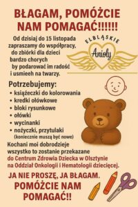 Nasza szkoła z radością przyłącza się do zbiórki organizowanej przez Fundację „Elbląskie Anioły”.