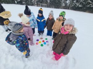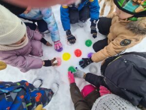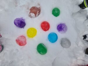 Kolorowe kule lodowe: Tworzyliśmy magiczne, barwne kule z balonów! Rozbijanie ich na dworzu i obserwowanie, jak mróz zamroził kolory, było fascynujące. 🎈🌈